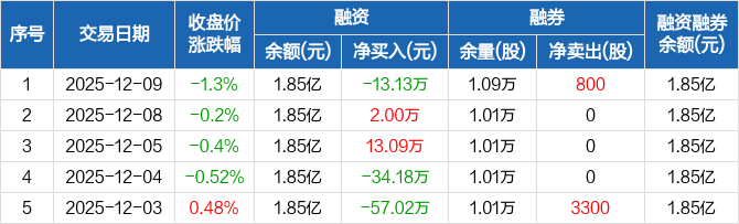 奇正藏药:融资净偿还13.13万元,融资余额1.85亿元(12-09)