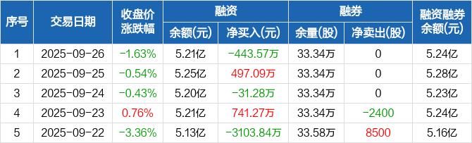 奥飞娱乐:融资净偿还443.57万元,融资余额5.21亿元(09-26)