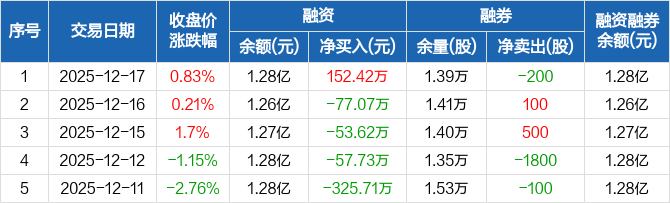 罗莱生活:融资净买入152.42万元,融资余额1.28亿元(12-17)