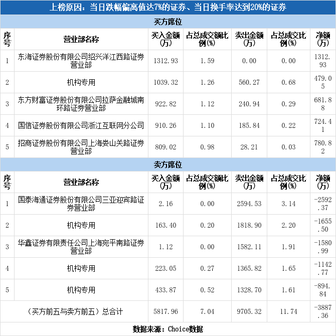 多主力现身龙虎榜,精艺股份下跌9.70%(09-29)