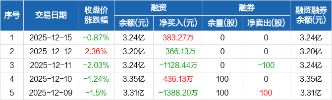 中电鑫龙:融资净买入383.27万元,融资余额3.24亿元(12-15)