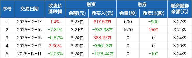 中电鑫龙:融资净买入617.59万元,融资余额3.27亿元(12-17)