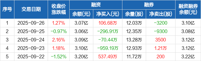 圣农发展:融资净买入106.68万元,融资余额3.07亿元(09-26)