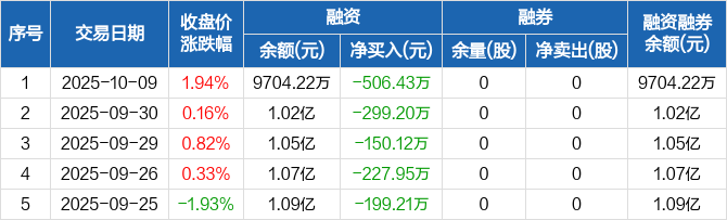 太阳电缆:融资余额9704.22万元,创近一年新低(10-09)