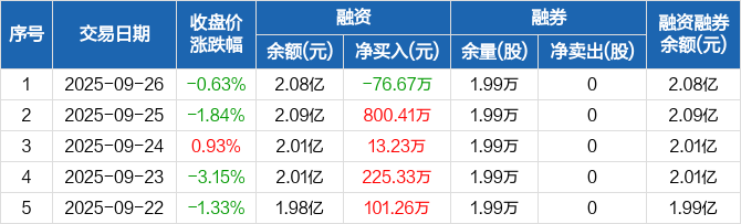 齐心集团:融资净偿还76.67万元,融资余额2.08亿元(09-26)