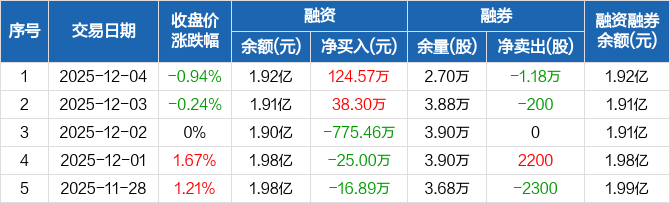 美盈森:融资净买入124.57万元,融资余额1.92亿元(12-04)