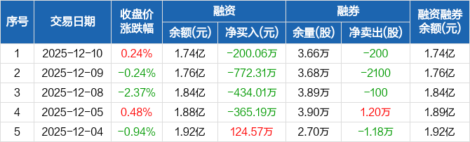 美盈森:连续4日融资净偿还累计1771.57万元(12-10)