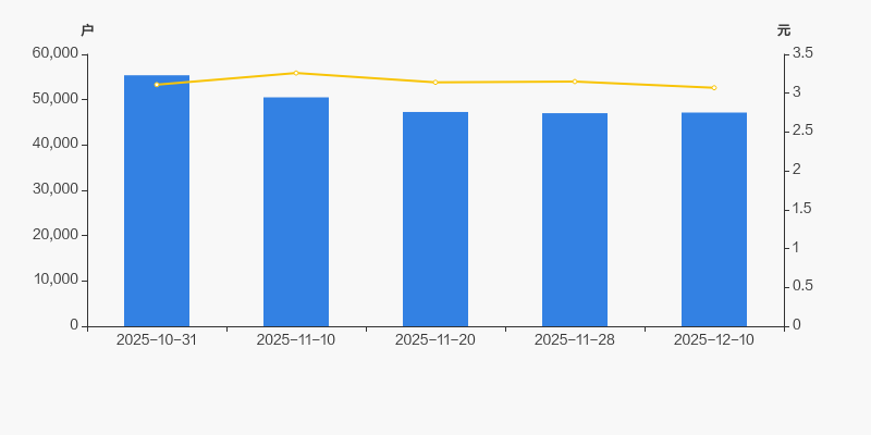 2025年10月31日至今,公司股东户数显著下降,区间跌幅为14.85%。2025年10月31日至2025年12月10日区间股价下降1.29%。