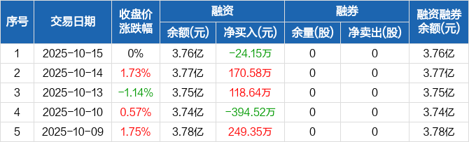 雅博股份:融资净偿还24.15万元,融资余额3.76亿元(10-15)