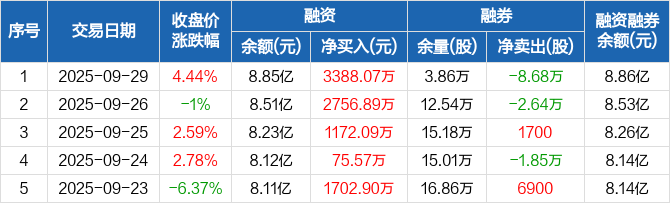 永太科技:融资余额8.85亿元,创近一年新高(09-29)