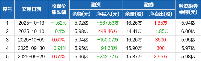 仙琚制药:融资净偿还567.63万元,融资余额5.92亿元(10-13)