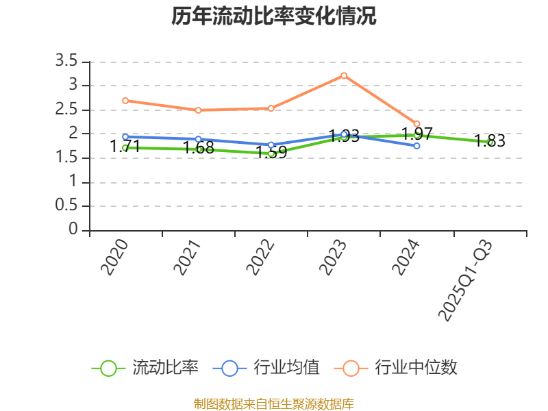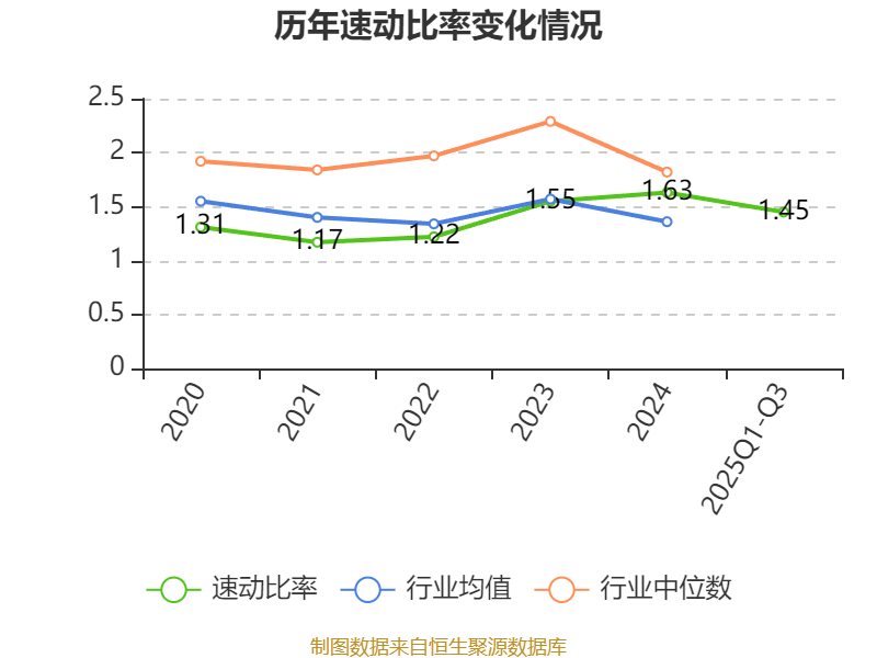 2025年前三季度,公司流动比率为1.83,速动比率为1.45。