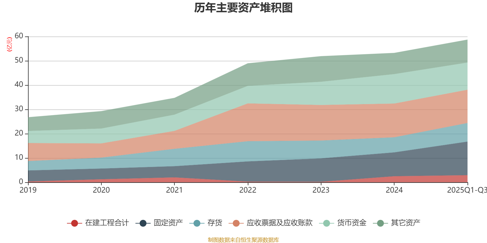 资产重大变化方面,截至2025年三季度末,公司固定资产较上年末增加41.07%,占公司总资产比重上升5.14个百分点;货币资金较上年末减少7.48%,占公司总资产比重下降3.67个百分点;应收票据及应收账款较上年末减少1.57%,占公司总资产比重下降2.81个百分点;存货较上年末增加23.5%,占公司总资产比重上升1.39个百分点。