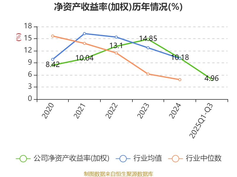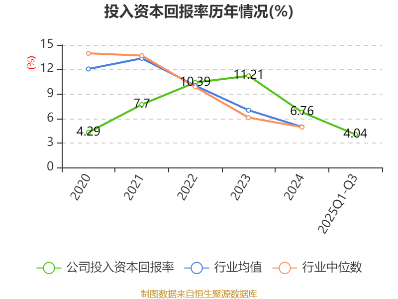 盈利能力方面, 2025年前三季度公司加权平均净资产收益率为4.96%,同比下降0.59个百分点。公司2025年前三季度投入资本回报率为4.04%,较上年同期上升0.24个百分点。