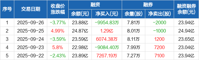 科华数据:融资净偿还9954.83万元,融资余额23.88亿元(09-26)