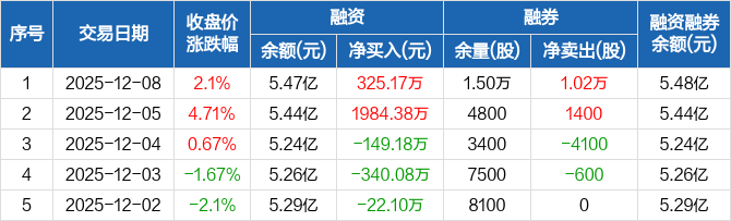 奥普光电:融资净买入325.17万元,融资余额5.47亿元(12-08)