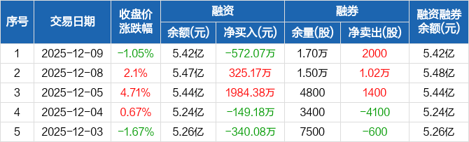 奥普光电:融资净偿还572.07万元,融资余额5.42亿元(12-09)