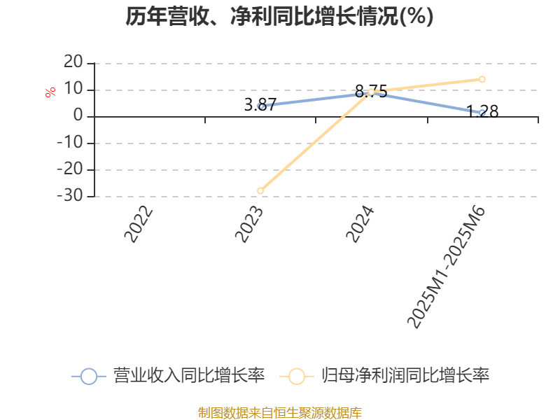 资产重大变化方面,截至2025年6月,公司应收票据及应收账款较上期末减少4.08%,占公司总资产比重下降1.43个百分点;固定资产较上期末增加12.71%,占公司总资产比重上升1.03个百分点;使用权资产较上期末增加55.87%,占公司总资产比重上升0.68个百分点;货币资金较上期末增加15.62%,占公司总资产比重上升0.34个百分点。