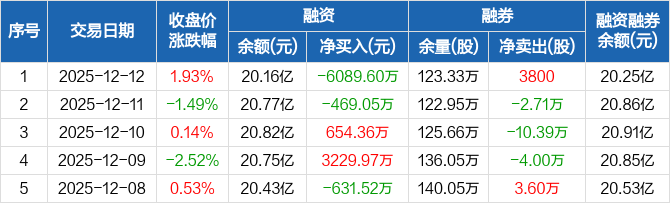 格林美:融资净偿还6089.6万元,融资余额20.16亿元(12-12)