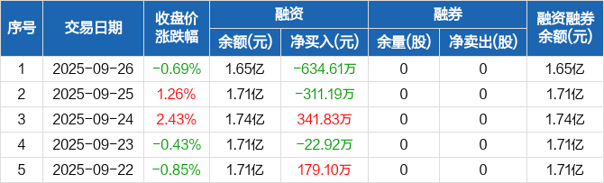 北京科锐:融资净偿还634.61万元,融资余额1.65亿元(09-26)