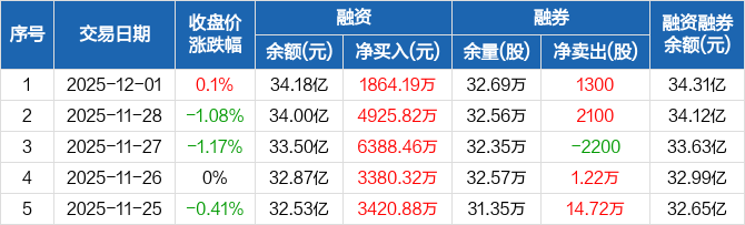 顺丰控股融资融券信息显示,2025年12月1日融资净买入1864.19万元;融资余额34.18亿元,较前一日增加0.55%。