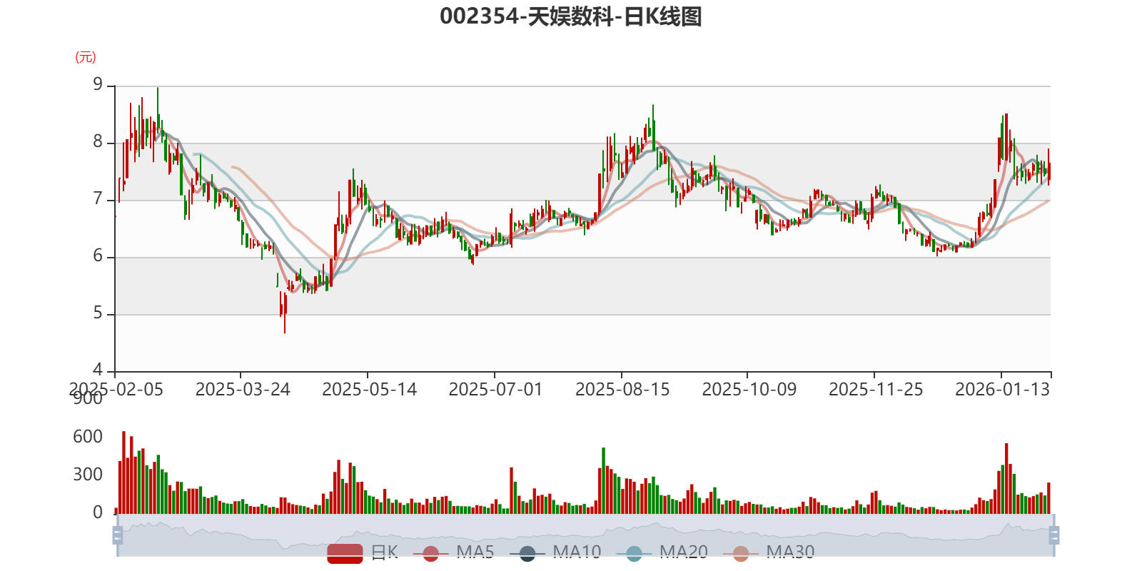 中证智能财讯天娱数科(002354)1月29日晚间披露2025年度业绩预告,预计2025年归母净利润亏损4100万元至5900万元,上年同期亏损1.18亿元;扣非净利润亏损1.16亿元至1.34亿元,上年同期亏损1.95亿元;基本每股收益-0.0248元/股至-0.0357元/股。以最新收盘价计算,市净率(LF)约9.84倍,市销率(TTM)约6.7倍。