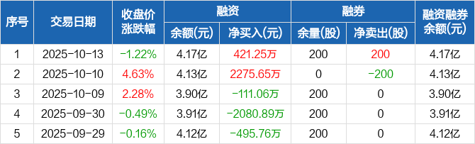 神剑股份:融资净买入421.25万元,融资余额4.17亿元(10-13)