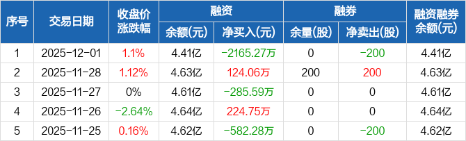 神剑股份:融资净偿还2165.27万元,融资余额4.41亿元(12-01)