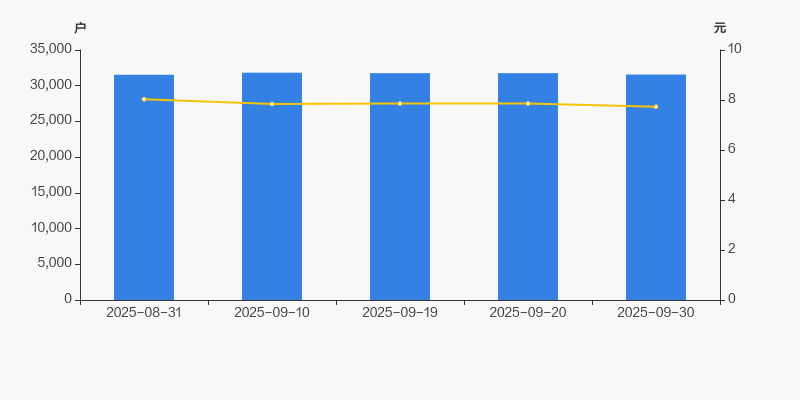 2025年8月31日至今,公司股东户数有所增长,区间涨幅为0.12%。2025年8月31日至2025年9月30日区间股价下降3.74%。