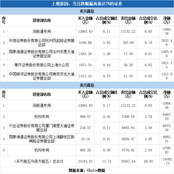 今日龙虎榜单上出现了深股通的身影,占据了买一、卖一的位置,净卖出1068.38万元,占当日成交总额的0.54%。
