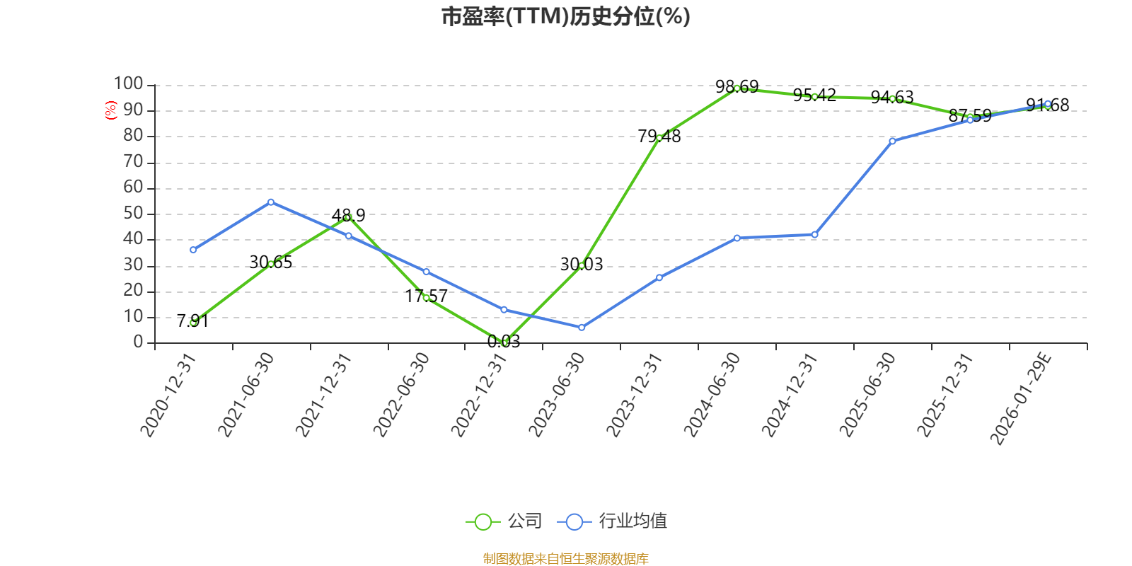 市盈率、市净率为负时,不显示当期分位数,会导致折线图中断。