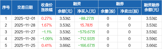 融发核电:融资净偿还88.27万元,融资余额3.53亿元(12-01)