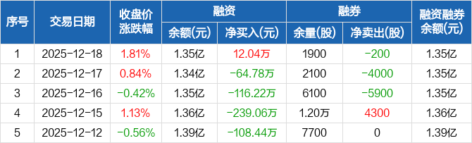 康力电梯:融资净买入12.04万元,融资余额1.35亿元(12-18)