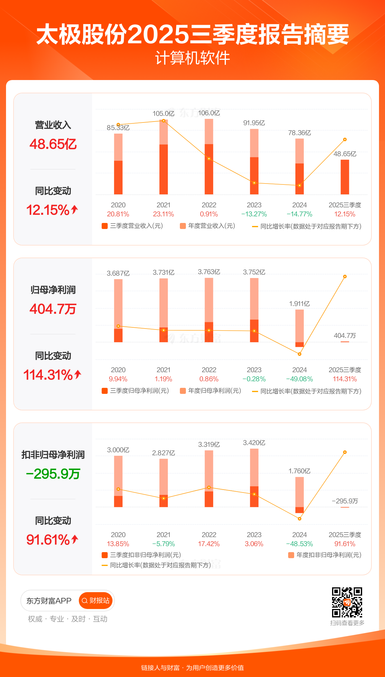 图解财报:太极股份前三季归母净利润404.65万元,同比增长114.31%