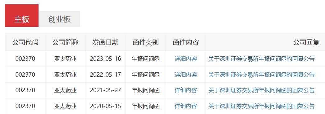 伴随扣非净利润连续6年亏损,亚太药业2019年至2022年的年报也连续收到深交所问询函。