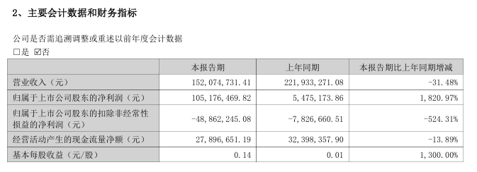 2025年上半年,亚太药业实现营业收入约1.52亿元,同比下降31.48%;归母净利润约1.05亿元,同比增加1820.97%;扣非净利润亏损4886.22万元。