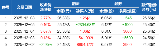 北方华创:融资净买入1.26亿元,融资余额26.38亿元(12-08)