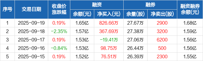 伟星新材:融资净买入826.66万元,融资余额1.65亿元(09-19)