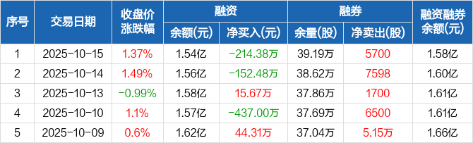 伟星新材:融资净偿还214.38万元,融资余额1.54亿元(10-15)