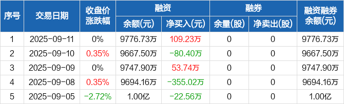 中锐股份:融资净买入109.23万元,融资余额9776.73万元(09-11)