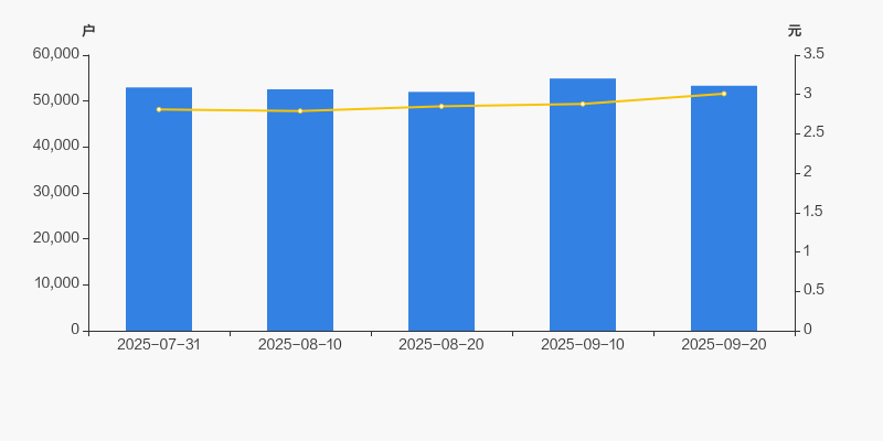 截至2025年9月20日,公司最新总股本为10.85亿股,且均为流通股。户均持有流通股数量由上期的1.98万股上升至2.03万股,户均流通市值6.12万元。
