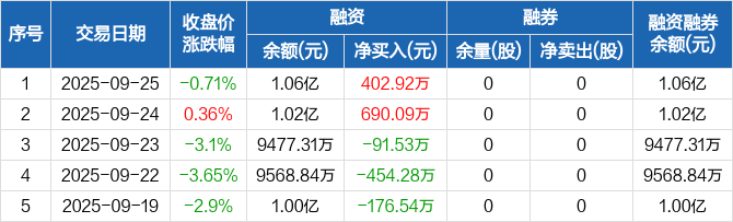 中锐股份:融资净买入402.92万元,融资余额1.06亿元(09-25)