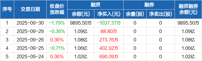 中锐股份:融资净偿还1037.37万元,融资余额9895.5万元(09-30)