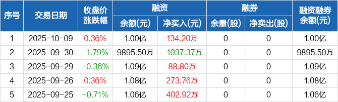 中锐股份:融资净买入134.2万元,融资余额1亿元(10-09)