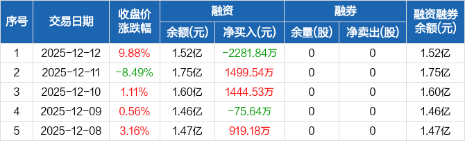 中锐股份:融资净偿还2281.84万元,创近一年新高(12-12)