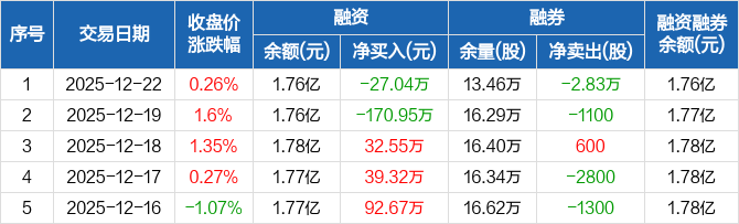 亚厦股份:融资净偿还27.04万元,融资余额1.76亿元(12-22)