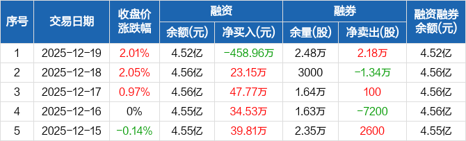 新北洋:融资净偿还458.96万元,融资余额4.52亿元(12-19)