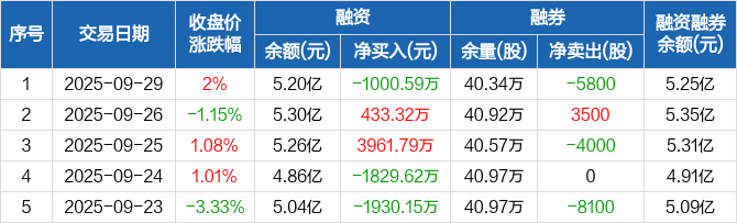 章源钨业:融资净偿还1000.59万元,融资余额5.2亿元(09-29)