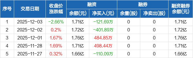 合众思壮:融资净偿还121.69万元,融资余额1.71亿元(12-03)