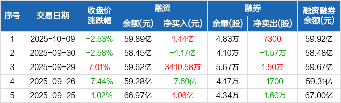 东山精密:融资净买入1.44亿元,融资余额59.89亿元(10-09)
